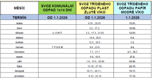 Svozový kalendář pro rok 2026